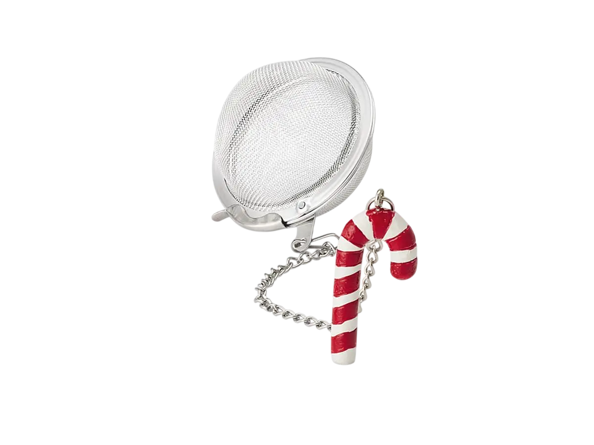 Une boule à thé spéciale Noël grâce à son petit sucre d’orge qui sert à maintenir le fil de la boule à thé hors de la tasse.