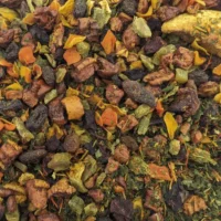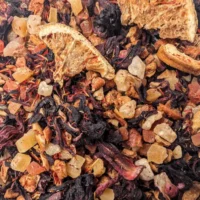 Fleurs d’hibiscus, morceaux d’orange, citron vert et pamplemousse. Agrémenté de cynorrhodon, baies de sureau, fleurs de tournesol et vitamine C. Un cocktail énergisant !