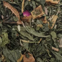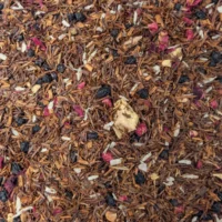 Rooibos, morceaux de goyave confite, pétales de roses, arôme naturel, arôme naturel de cannelle.